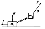 5、选择题 如图所示,质量分别为m1、m2的两个物体通过轻弹簧连接,在力F的作用下一起沿水平方向做匀速直线运动(m1在地面,m2在空中),力F与水平方向成θ角,则m1所受支持力N和摩擦力,正确的是