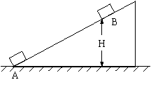 1、简答题  如图所示,滑块以某一速率靠惯性沿固定斜面由底端A向上运动,到达最高点B时离地面的高度为H,然后又沿斜面返回,到出发点A时的速率为原来速率的一半。若取斜面底端重力势能为零,求上升过程中滑块动能等于势能的位置离地面的高度h。