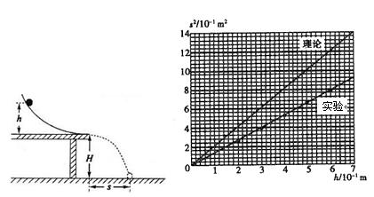 在坐标纸上描点后作出了s2--h关系图.对比实验结果与理论计算得到的s2-h关系图线(图中已画出),判断自同一高度静止释放的钢球,水平抛出的速率____________(填“小于”或“大于”)理论值。