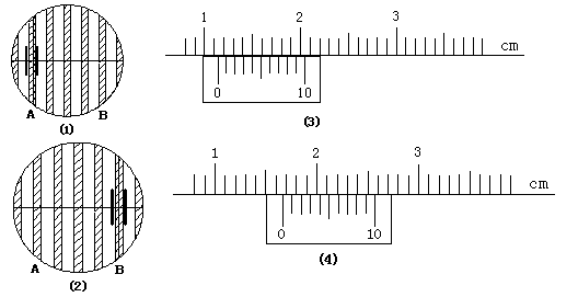 (2)某同学在做“用双缝干涉测光的波长”实验时,第一次分划板中心刻度线对齐A条纹中心时,游标卡尺的示数如图(3)所示,第二次分划板中心刻度线对齐B条纹中心时,游标卡尺的示数如图(4)所示,已知双缝间距为0.5mm,从双缝到屏的距离为1m,则图(3)中游标卡尺的示数为?mm.图(4)游标卡尺的示数为?mm.实验时测量多条干涉条纹宽度的目的是?,所测光波的波长为?m .(保留两位有效数字)