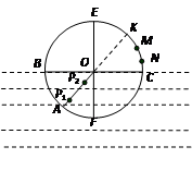 2、实验题 (1)某研究小组的同学根据所学的光学知识,设计了一个测量液体折射率的仪器。如图所示,在一个圆盘上,过其圆心O做两条互相垂直的直径BC、EF。在半径OA上,垂直盘面插上两枚大头针P1、P2并保持P1、P2位置不变,每次测量时让圆盘的下半部分竖直进入液体中,而且总使夜面与直径BC相平,EF作为界面的法线,而后在图中右上方区域观察P1、P2的像,并在圆周上插上大头针P3,使P3正好挡住P1、P2的像。同学们通过计算,预先在圆周EC部分刻好了折射率的值,这样只要根据P3所插的位置,就可以直接读出液体折射率的值。