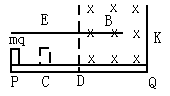 4、计算题 如图所示,PQ是一长为L=0.64m的绝缘平板,固定在水平地面上,挡板K固定在平板的右端。整个空间有一个平行于PQ的匀强电场E,在板的右半部分有一垂直于纸面向里的匀强磁场,磁场的宽度d=0.32m。一个质量m=0.50×10-3 kg、带电荷量为q=5.0×10-2 C的小物体(可视为质点),从板的P端由静止开始向右做匀加速运动,从D点进入磁场后恰能做匀速直线运动。当物体碰到挡板K后被弹回,若在碰撞瞬间撤去电场(不计撤去电场对原磁场的影响),物体返回时在磁场中仍作匀速运动,离开磁场后做减速运动,停在C点,PC=L/4。若物体与平板间的动摩擦因数μ=0.20,g取10m/s2。