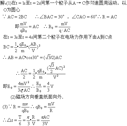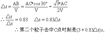 (3)若第1粒子击中C点的时刻已知为(1+△t)s,那么第2个粒子击中C点的时刻是多少?