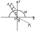 5、实验题 如图所示,画有直角坐标系Oxy的白纸位于水平桌面上.M是放在白纸上的半圆形玻璃砖,其底面的圆心在坐标原点,直边与x轴重合.OA是画在纸上的直线,P1、P2为竖直地插在直线OA上的两枚大头针,P3是竖直地插在纸上的第三枚大头针,