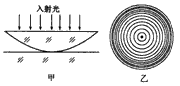 如图甲所示,在一块平板玻璃上放置一平凸薄透镜,在两者之间形成厚度不均匀的空气膜,让一束单一波长的光垂直入射到该装置上,结果在上方观察到如图乙所示的同心内疏外密的圆环状干涉条纹,称为 牛顿环。以下说法正确的是( ? )