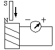 (2)已知一灵敏电流计,当电流从正接线柱流入时,指针向正接线柱一侧偏转,现把它与线圈串联接成下图所示电路,条形磁铁的磁极、运动方向及灵敏电流计的正负接线柱和指针偏转方向均如图所示,试画出螺线管上导线的绕向。