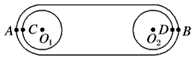 1、选择题 如图所示的皮带传动装置中,O1是主动轮,O2是从动轮,A、B分别是皮带上与两轮接触的点,C、D分别是两轮边缘与皮带接触的点(为清楚起见,图中将两轮与皮带画得略微分开,而实际上皮带与两轮是紧密接触的)。当O1顺时针启动时,若皮带与两轮不打滑,则A、B、C、D各点所受静摩擦力的方向分别是