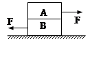 2、选择题 如图所示两个物体A.? B的质量均为1kg,各接触面间的动摩擦因数均为0.3,同时用F=1N的两个水平力分别作用在A.? B上,则地面对物体B.? B对物体A的摩擦力分别为(?)(g=10m/s2)
