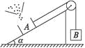 .所以A正确;对A和里面的沙子受力分析,然后将重力向沿斜面方向和垂直斜面方向分解.对垂直斜面方向列平衡方程:N-(M+m)gcosα=0(m为沙子的质量),解之得:N=(M+m)g,由于m越来越大,故N也越来越大.故B正确.由于没加沙子之前B的重力大于A重力沿斜面的分力,由平衡条件知A受到的摩擦力沿斜面向下,这种情况下随沙子的增加,摩擦力减小,减小到0后,摩擦力反向逐渐增大,故应小减小后增大;.故C错误.由对C选项的解析知:D错误,故D正确.