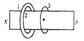 1、选择题 如图所示,套在条形磁铁外的三个线圈,其面积S1>S2= S3,且 “3”线圈在磁铁的正中间。设各线圈中的磁通量依次为φ1、φ2、φ3则它们的大小关系是[ ]