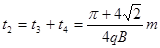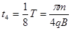 粒子在M点反弹后,速度方向垂直于磁场方向,所以粒子做匀速圆周运动,设周期为T,做匀速圆周运动的时间为t4,M点到右边界的垂直距离为 ,所以粒子在磁场中刚好完成八分之一个圆周运动,则
