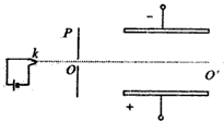 2、计算题 如图所示,能发射电子的阴极k和金属板P之间所加电压为U1,其右侧有一平行板电容器,已知平行板的板长为L,板间距离为d,且电容器的上极板带负电荷,下极板带等量的正电荷,在两极板间还存在有垂直于纸面的匀强磁场。从阴极k发出的电子被kP之间的电场加速后从P板上的小孔О射出,然后射入电容器并刚好从两板正中间沿直线ОО′射出电容器,如果在电子进入电容器前撤去板间电场而不改变磁场,则电子刚好能从平行板的右侧边缘射出,不计电子初速度、重力和电子间的相互作用,且整个装置放在真空中。求:
