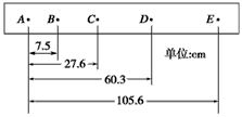 1、实验题 在用电火花计时器“研究匀变速直线运动”的实验中,如图所示的是一次记录小车运动情况的纸带,图中A、B、C、D、E为相邻的计数点,相邻计数点间还有四个点未画出。