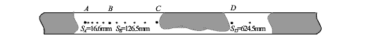 5、实验题 某同学用打点计时器测量做匀加速直线运动的物体的速度,电源频率f=50Hz在线带上打出的点中,选出零点,每隔4个点取1个计数点,因保存不当,纸带被污染,如图所示,A、B、C、D是依次排列的4个计数点,仅能读出其中3个计数点到零点的距离: