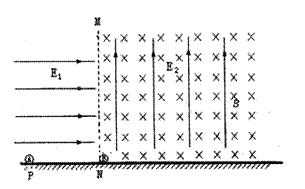 2、简答题 如图所示,水平光滑绝缘地面上方虚线MN左侧存在水平向右的匀强电场,电场强度E1=1.0N/C,右侧存在着竖直向上、电场强度E2=50N/C的匀强电场和垂直纸面向里、磁感应强度B1=5.0T的匀强磁场,场区竖直方向均足够在。有两个完全相同的金属小球A、B,质量均为0.10g,A带正电,电量大小为4.0×10-5C,B不带电。现将小球A在P点由静止释放,当A运动到N点与静止在N点的小球B碰撞,PN=0.2m,A、B碰撞时间极短,碰撞过程中无能量损失。球的大小忽略不计。(g取10m/s2)求: