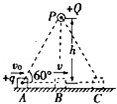 2、选择题  如图,在足够长的绝缘水平直线轨道上,B点正上方h处的p点固定电荷量为+Q的点电荷.一质量为m、电荷量为+q的物块(可视为质点),从轨道上的A点以初速度v0沿轨道向右运动,当运动到B点时速度为v.到C点时速度正好减为零,已知点电荷甲产生的电场在A点的电势为φ(取无穷远处电势为零),PA连线与水平轨道的夹角为60°,AB=BC,物块乙与水平直线轨道的动摩擦因数为μ,静电力常数为k,由此可得(  )