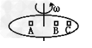 2、选择题 如图所示,水平转台上放着A、B、C三个物体,质量分别为2m、m、m,离转轴的距离分别为R、R、2R,与转台间的摩擦因数相同,转台旋转时,下列说法中,正确的是?