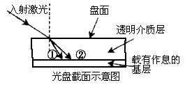1、选择题 光盘上的信息通常是通过激光束来读取的。若激光束不是垂直入射到盘面上,则光线在通过透明介质层时会发生偏折而改变行进的方向。如图所示为一束激光(红、蓝混合)入射到光盘面上后的折射情况。则下列说法中正确的是