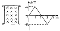 4、选择题 矩形导线框abcd固定在匀强磁场中,磁感线的方向与导线框所在平面垂直,规定磁场的正方向垂直纸面向里,磁感应强度B随时间变化的规律如图所示。若规定顺时针方向为感应电流i的正方向,下列各图中正确的是( ? )