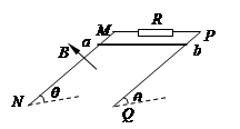 1、计算题 两根足够长的光滑平行直导轨MN、PQ与水平面成θ角放置,两导轨间距为L,M、P两点间接有阻值为R的电阻.一根质量为m的均匀直金属杆ab放在两导轨上,并与导轨垂直.整套装置处于磁感应强度为B的匀强磁场中,磁场方向垂直于导轨平面向上,导轨和金属杆接触良好,它们的电阻不计.现让ab杆由静止开始沿导轨下滑.