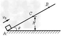 1、计算题 如图所示,让一小物体(可看作质点)从图示斜面上的A点以v0=4m/s的初速度滑上斜面,物体滑到斜面上的B点后沿原路返回。若A到B的距离为1m,斜面倾角为θ=37°。求: