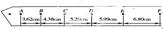 1、实验题 某同学在“用打点计时器测速度”的实验中,用打点计时器记录了被匀加速运动的小车拖动的纸带的运动情况,在纸带上确定出A、B、C、D、E、F共6个计数点。其相邻点间的距离如图所示,每两个相邻的测量点之间的时间间隔为0.10s。?