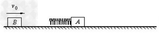 如图所示,物体A静止在光滑平直轨道上,其左端固定有轻质弹簧,物体B以速度v0=2.0m/s沿轨道向物体A运动,并通过弹簧与物体A发生相互作用.设A、B两物体的质量均为m=2kg,求当物体A的速度多大时,A、B组成的系统动能损失最大?损失的最大动能为多少?
