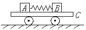 4、选择题 如图所示,A、B两物体质量相等,原来静止在平板小车C上,A和B间夹一被压缩了的轻弹簧,A、B与平板车上表面动摩擦因数之比为3∶2,地面光滑。当弹簧突然释放后,A、B相对C滑动的过程中,以下说法中正确的