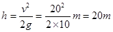 2、选择题 一个竖直上抛的物体,在上升的过程中的平均速度是10m/s,取g=10m/s2,它能达到的最大高度是( )