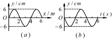 本题解析:从波的图像和P点的振动图象可知:振幅为6cm,波长为4m,周期为4s,A正确;波速,B正确;零时刻P点从平衡位置向下运动,说明横波沿x轴正方向传播,C错误;在任意4s内P点完成了一个全振动,运动的路程为四倍振幅24cm,D正确;任意1s内P运动的路程不一定等于振幅,E错误。故选ABD。
