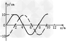 3、计算题 图示为一列简谐横波在介质中同一区域传播的情况,实线为t1时刻波形图;虚线为t2时刻波形图,已知?。