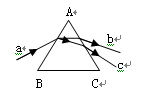1、选择题 如图所示,一束光a从空气射向一玻璃三棱镜,出来后分为两束光,这表明: