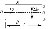 1、简答题  ; 如图所示,A.B为相距较近的一对平行金属板,长度为l,间距为2d.一束相同的带电粒子(不计重力),以初速v0从A.B正中左端的O点射入A.B间,v0的方向与两板平行.如果在A.B间加上方向竖直向上、大小为E的匀强电场,则粒子束恰好从A板右端的a点射出;如果在A.B间加上方向垂直纸面向外、大小为B的匀强磁场,则粒子束将恰好从B板右端的b点射出.