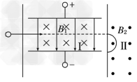 1、选择题 如图所示,有一混合正离子束先后通过正交电场、磁场区域Ⅰ和匀强磁场区域Ⅱ,如果这束正离子束在区域Ⅰ中不偏转,进入区域Ⅱ后偏转半径又相同,则说明这些正离子具有相同的