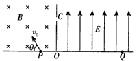 3、计算题 如图所示的区域中,左边为垂直纸面向里的匀强磁场,磁感应强度为B,右边是一个电场强度大小未知的匀强电场,其方向平行于OC向上且垂直于磁场方向。在P点有一个放射源,在纸平面内向各个方向放射出质量为m、电荷量为-q、速度大小相等的带电粒子。有一初速度方向与边界线的夹角θ=60°的粒子(如图所示),恰好从O点正上方的小孔C垂直于OC射入匀强电场,最后打在Q点。已知OC=L,OQ=2L,不计粒子的重力,求: