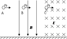 1、选择题 如图所示,质量为m、带电量为+q的三个相同的带电小球A、B、C,从同一高度以初速度v0水平抛出,B球处于竖直向下的匀强磁场中,C球处于垂直纸面向里的匀强电场中,它们落地的时间分别为tA、tB、tC,落地时的速度大小分别为vA、vB、vC,则以下判断正确的是: