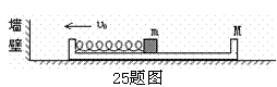 1、简答题  如图所示,轻质弹簧将质量为m的小物块连接在质量为M(M=3m)的光滑框架内。小物块位于框架中心位置时弹簧处于自由长度.现设框架与小物块以共同速度V0沿光滑水平面向左匀速滑动。