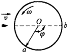 5、选择题 如图所示,直径为d的纸筒以角速度ω绕轴O匀速转动,从枪口发射的子弹沿直径穿过圆筒.若子弹在圆筒旋转不到半周时在圆筒上留下a、b两个弹孔,已知aO和bO夹角为φ,则子弹的速度大小为( )