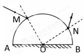 5、计算题 一半圆柱形透明物体横截面如图所示,地面AOB镀银,(图中粗线),O表示半圆截面的圆心,一束光线在横截面内从M点的入射,经过AB面反射后从N点射出,已知光线在M点的入射角为30,