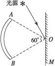 4、选择题 如图14-1-11所示,一平面镜M以ω=?rad/s的角速度绕垂直于纸面且通过O的轴转动,AB为一圆弧形屏幕,它的圆心亦在O点,圆心角为60°.现在来自频闪光源的一束细光,从一个固定方向射向平面镜M上的O点,当光源每秒闪光12次,M转一周,在屏AB上能出现的光点数是(?)