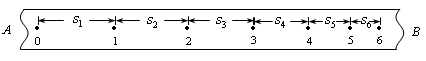5、填空题 如图是物体做匀变速直线运动得到的一条纸带,相邻的两计数点之间有四个计时点没画出来,依照打点的先后顺序依次编为1、2、3、4、5、6,测得=5.18cm,