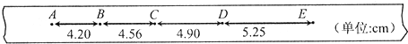 1、填空题  张军在做“测定小车匀变速直线运动的加速度”的实验中,用打点计时器记录了小车的运动情况.他挑选出的纸带如图所示.图中A、B、C、D、E是按打点先后顺序依次选取的计数点,两个相邻的计数点之间的时间间隔均为0.10s.则计数点C对应的瞬时速度为______m/s,小车运动的加速度是______m/s2(结果保留两位有效数字).