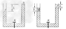 5、计算题 如图所示,有一个连通器,左右两支管的横截面积均为S,管内盛有密度为ρ的液体,开始时两支管内的液面高度差为h.若打开底部中央的阀门K ,液体开始流动。最终两个液面相平,在这一过程中,液体的重力势能变化了多少?
