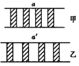 1、选择题 如图为双缝干涉实验中产生的条纹图样:甲图为绿光进行实验的图样,a为中央亮条纹;乙为换用另一种单色光进行实验的图样,a"为中央亮条纹。则以下说法正确的是