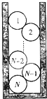 选择题 一个很高的容器内壁为圆柱形,里面装有N个质量均为m、大小相同的小球,容器的内半径与小球的半径之比为8:5,如图所示,现将小球从上至下依次编号为1、2、3、…N,不计一切摩擦,重力加速度设为g,则第4个 小球对第5个小球的压力大小为A.4mgB.5mgC.6mgD.以上答案都不对