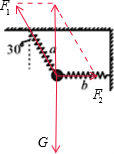 解:对小球受力分析,受到重力和两个弹簧的弹力,如图