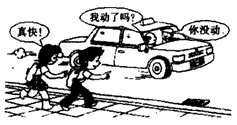 5、选择题 观察如图所示的漫画,图中司机说乘车人“你没动”,而路上的小女孩说他运动得“真快”,关于司机和小女孩对乘车人运动状态的描述所选取的参考系分别为( ? ?)