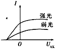3、选择题 研究光电效应的电路如图所示用频率相同、强度不同的光分别照射密封真空管的钠极板(阴极K),钠极板发射出的光电子被阳极A吸收,在电路中形成光电流。下列光电流I与A、K之间的电压UAK的关系图像中,正确的是( ? )