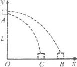 2、计算题 (15分)如图为俯视图,在一光滑水平面上建立x-y平面直角坐标系,有一质量为m的小木块从A点沿x轴方向以某初速度射出,A点离x轴距离为L,小木块沿y轴负方向始终受到恒力F1=F0.小木块的运动轨迹与x轴的交点B到y轴距离为s,当同时施加沿x轴负方向恒力F2时,小木块仍以原来初速度射出。其运动轨迹与x轴的交点C到y轴距离为