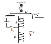 5、填空题  如图所示是一种延时继电器的示意图,铁芯上有两个线圈A和B。当S1闭合时,电磁铁将吸引衔铁D,使触头C接通电路工作。
